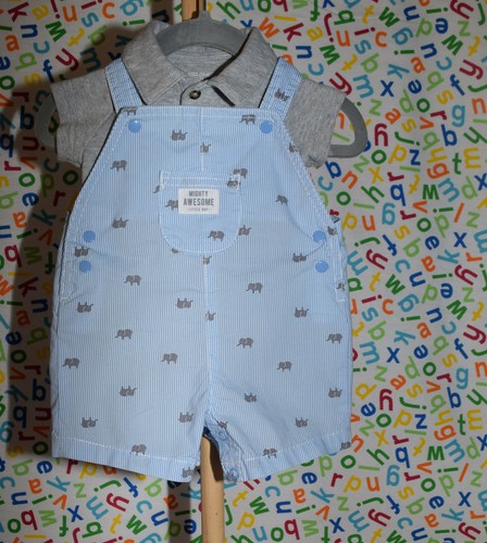 Just One You By Carters Overall 2 Pc Set Baby Boy 3m Blue Striped Elephants Ebay